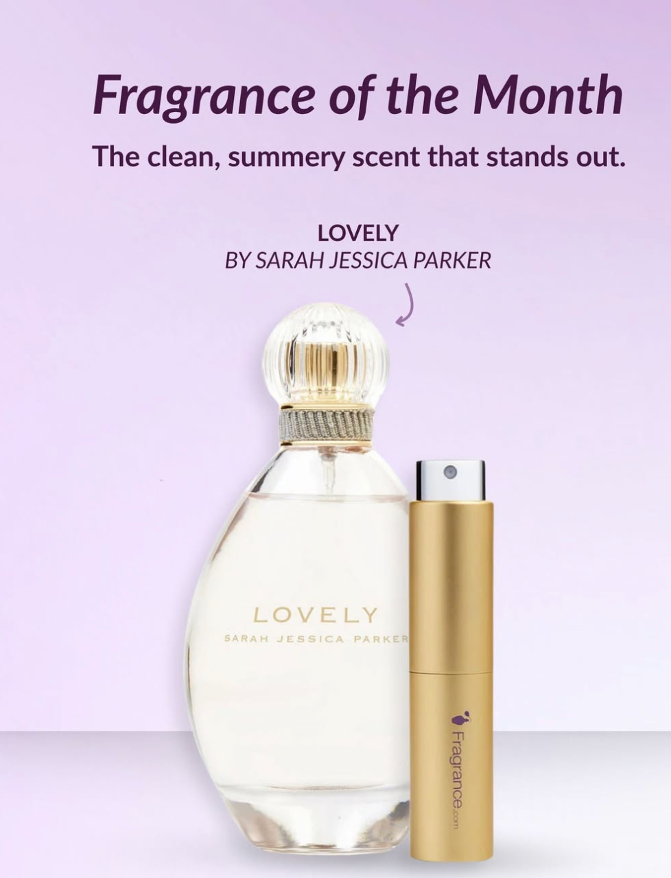 Over summer 2025, I was interning for the marketing department of Fragrance.com, a company that sells luxury fragrances and other products at discounted rates. I helped work on many social media, email, and SMS advertisement campaigns as well as stock checks, customer reviews, etc. One of my assigned projects was to work on the Fragrance of the Month for July, Lovely by Sarah Jessica Parker. In addition to the graphic below, I helped create the creative for the email to subscribers.
